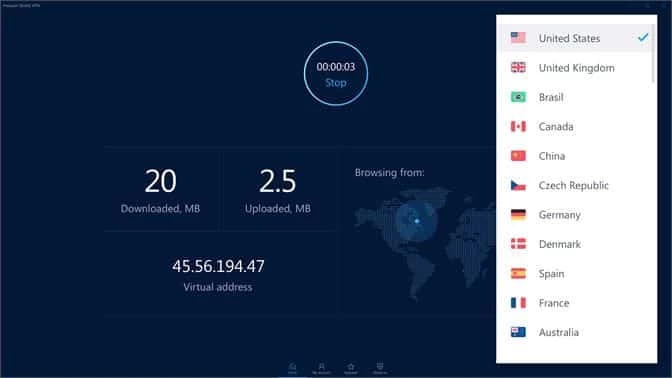Con 2.500 servidores en 25 países, la VPN ofrece una conexión de alta velocidad con velocidades de descarga de 0,54 megabytes por segundo.